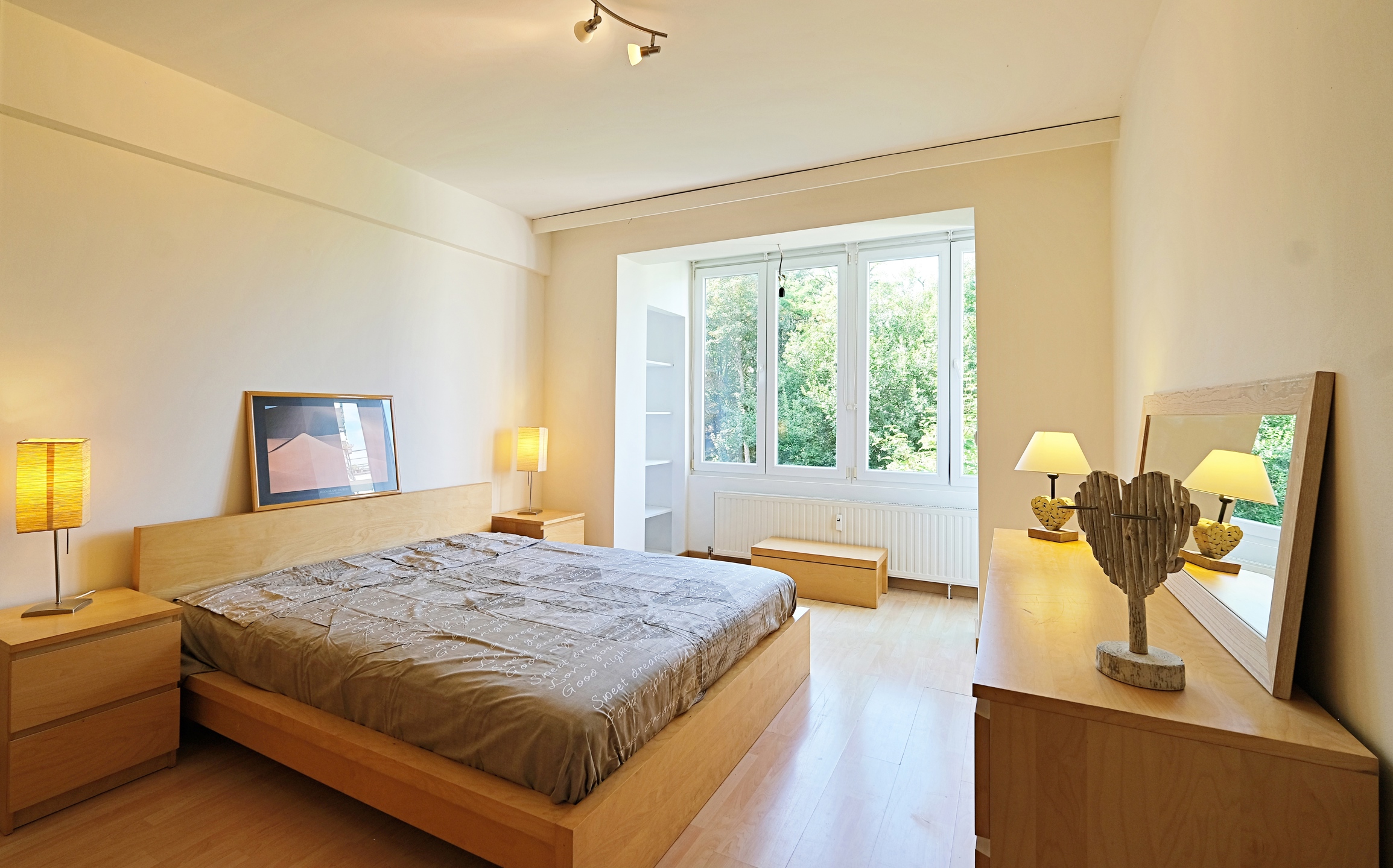 We offer a beautiful two-bedroom apartment furnished of approximately 88 m² (according to PEB) with a balcony. It's in excellent condition, spacious, and bright.