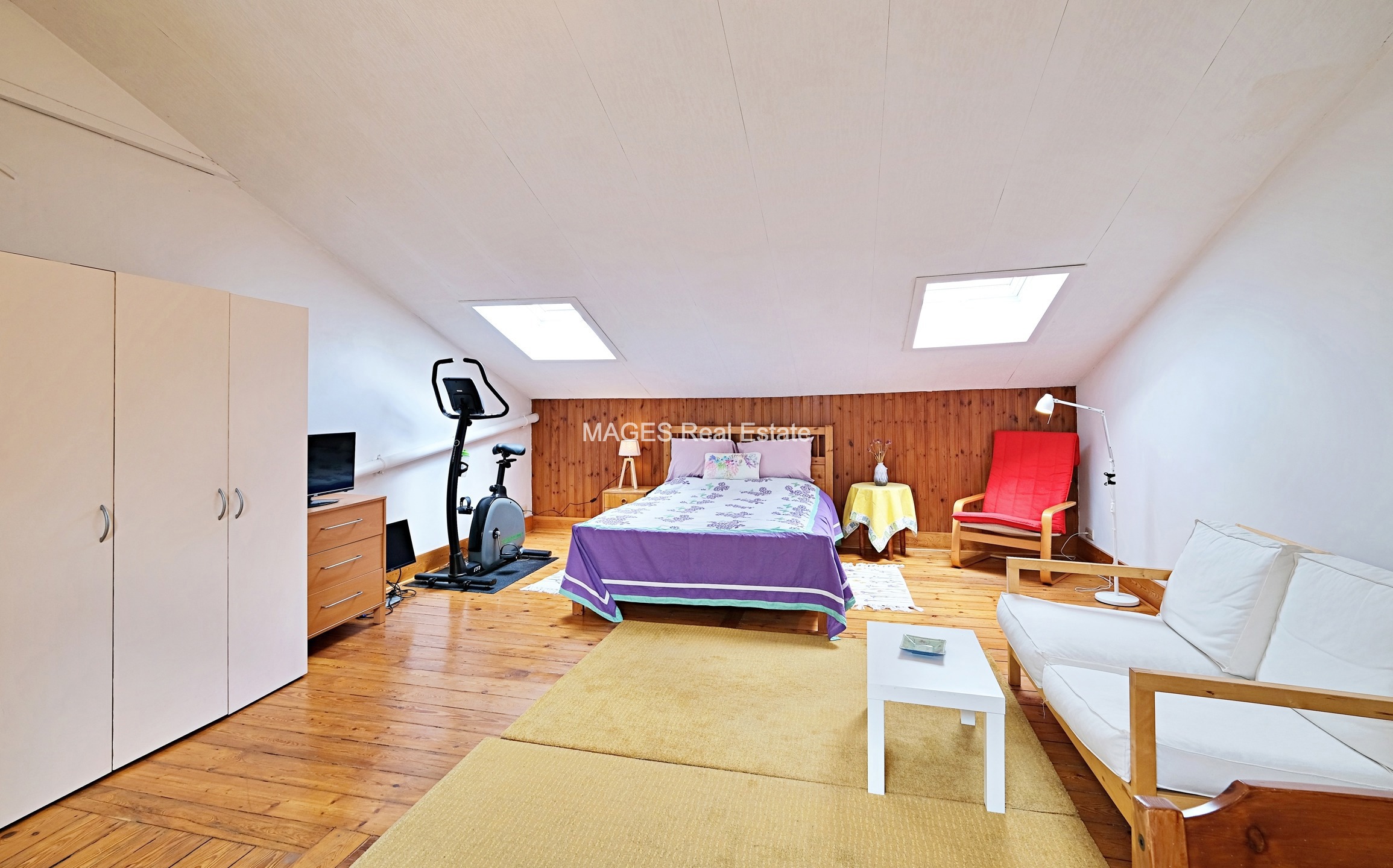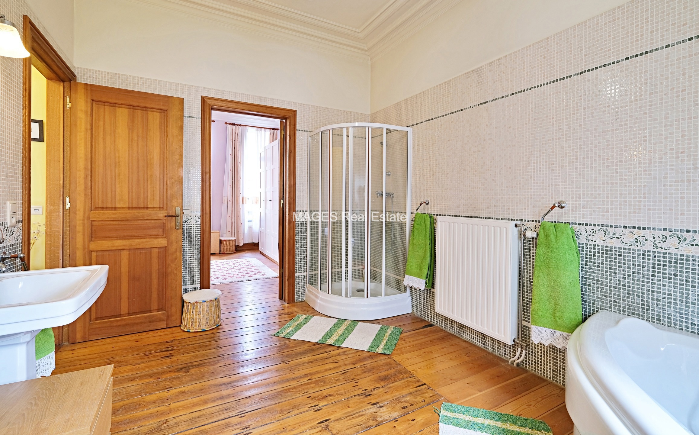On the 1st floor, a large bright bedroom of approximately 20 m2 with balcony and a bathroom of approximately 13 m2 with shower, bath and WC.