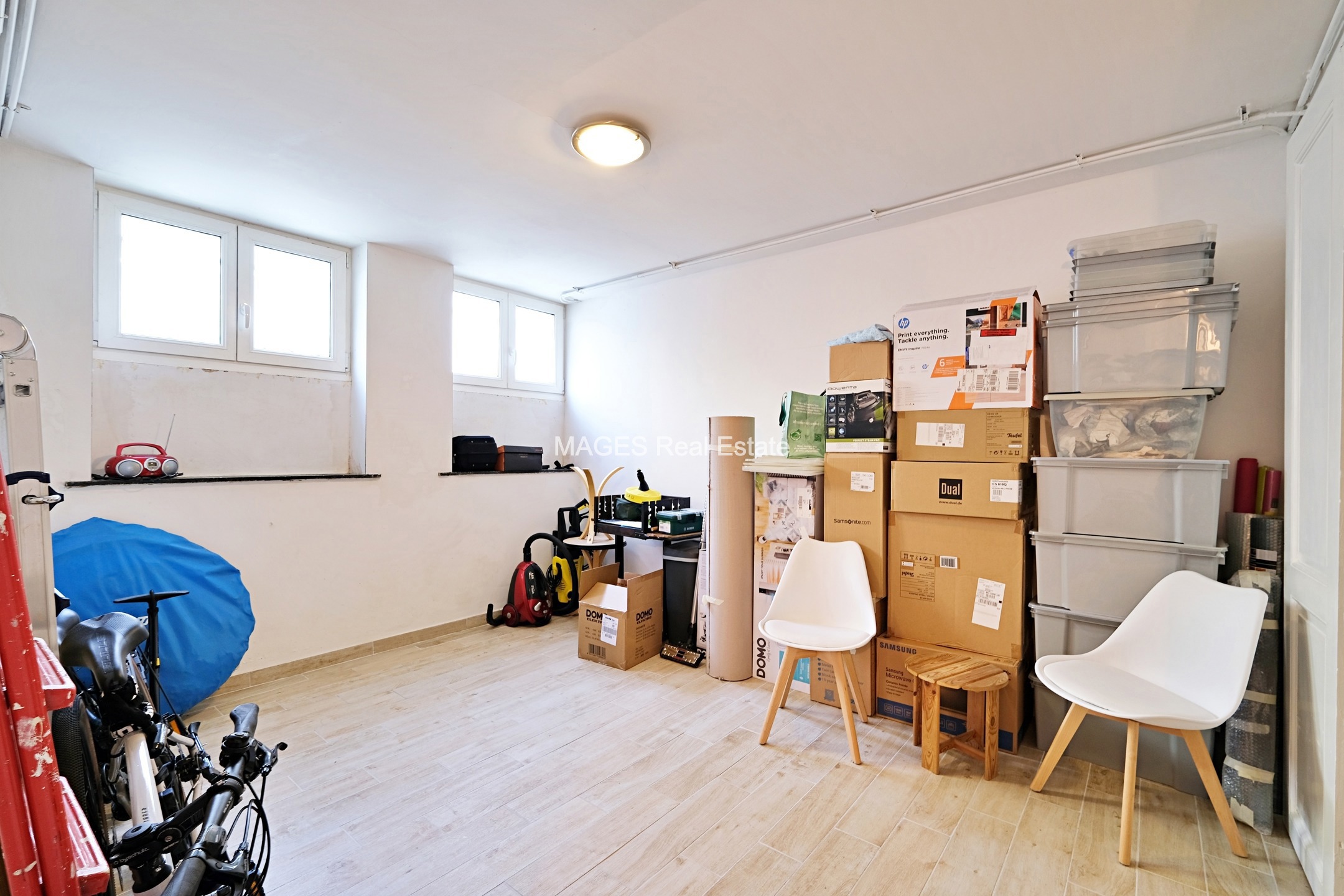 In the basement, completely renovated cellar, clean and dry with washing machine and technical room.