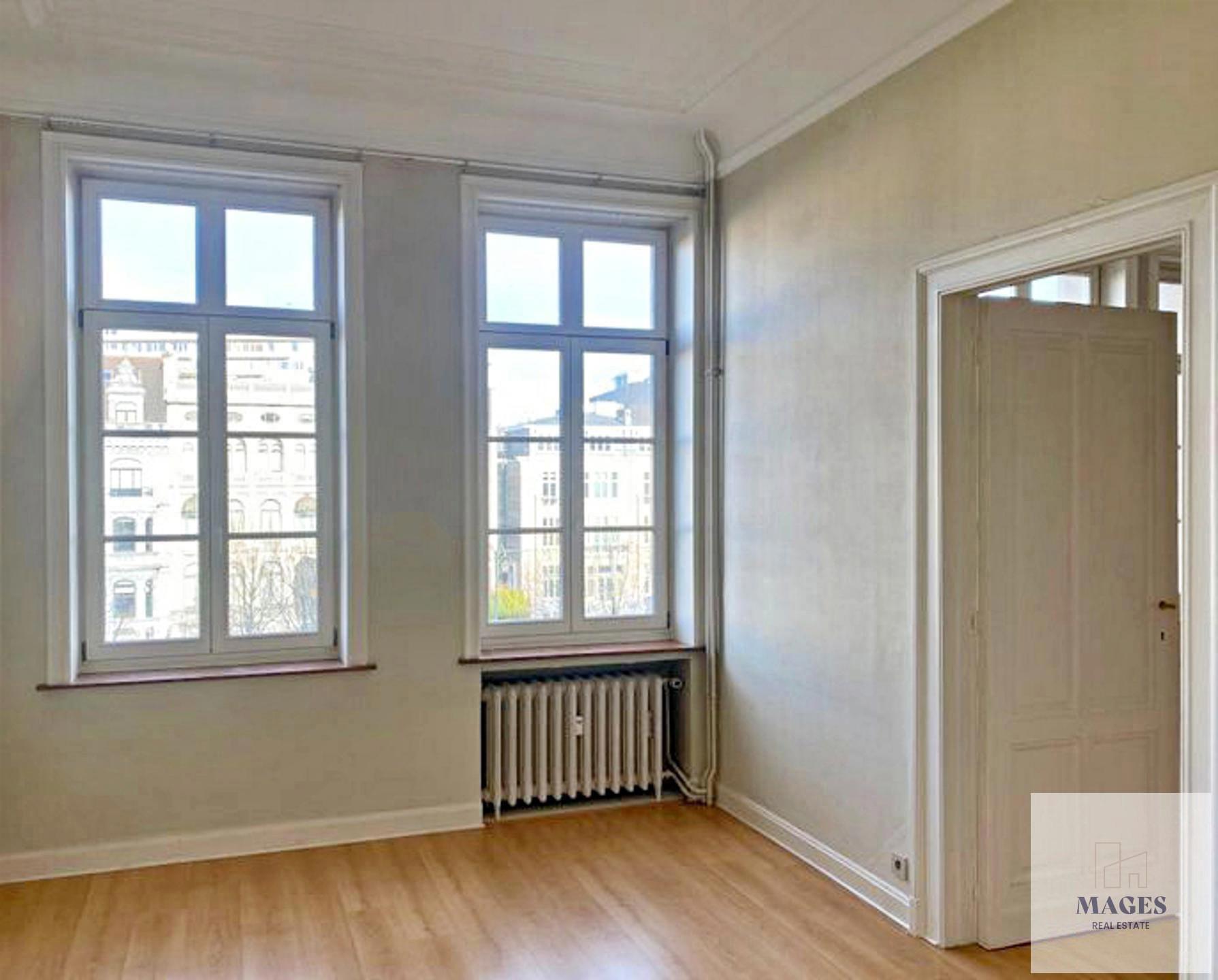 Quartier Cinquantenaire - Entre Mérode et le rond-point Montgomery, proche des transports en commun, métro, tram, bus et des commerces. Nous vous proposons un bel appartement spacieux, d'environ 95 m2 entièrement rénové, dans une maison de maître. Il est composé d'un living avec cuisine équipée, 1 chambre avec salle de douche donnant sur une belle terrasse d'environ 15 m2 orientée sud, un bureau ou deuxième chambre avec salle de douche et lave linge, WC séparé. Possibilité de louer un garage box fermé, PEB D, charges 170€/mois tout inclus hors internet. Contact +32 493 82 85 84 - info@mages.be - www.mages.be
