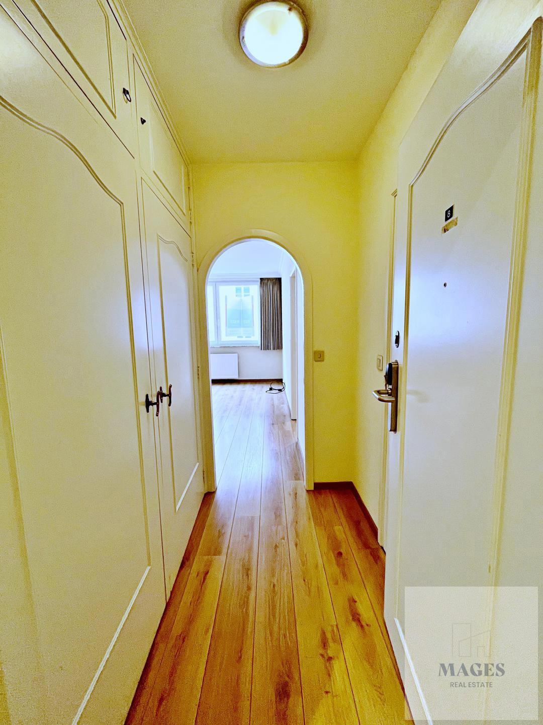 Quartier Montgomery - extrêmement bien situé à proximité immédiate des transports en commun et des commerces. Nous vous proposons ce très bel appartement 1 chambre d'environ 45 m2 (PEB) en excellent état, dans une résidence de services pour seniors. Il se compose d'un hall d'entrée avec vestiaire, 1 salle de douche, un living très lumineux, une cuisine semi-équipée et une chambre. Parquet stratifié, double vitrage, chauffage central au gaz, électricité conforme et PEB D. Aucun travaux à prévoir dans l'appartement. Excellent achat d'investissement, rendement locatif brut de 6,5 %. Chaque appartement est équipé d'un système d'alarme de secours, d'un téléphone intérieur et extérieur. La garde d'accueil assure confort et sécurité 24/24h. Restaurant avec repas préparés en interne par un chef et son équipe. Équipes de soins attachées à la résidence. De nombreuses activités et sorties externes sont organisées. Plus de renseignements sur demande. Contact +32 493 82 85 84 - info@mages.be - www.mages.be