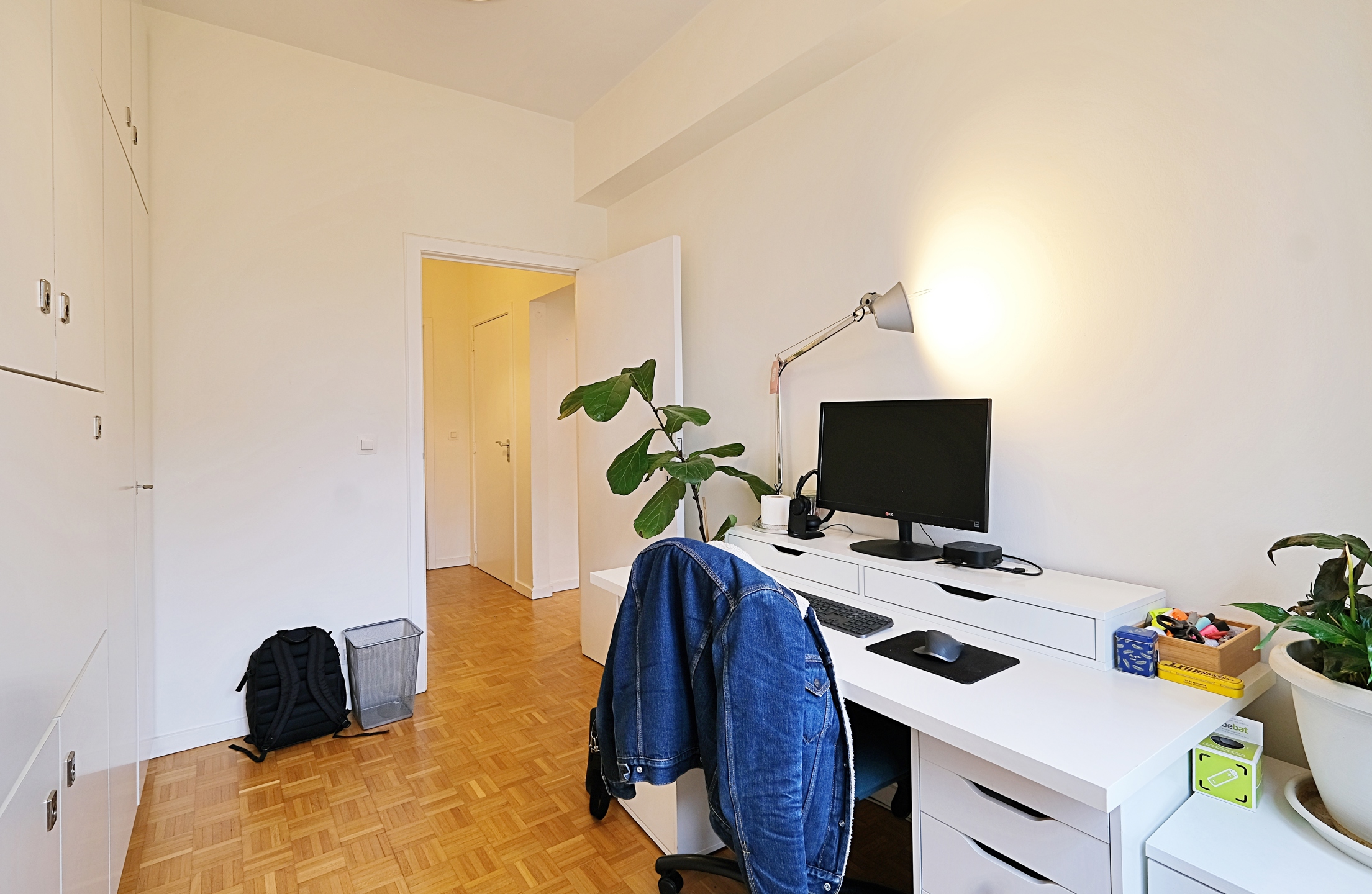 - 2 chambres spacieuses et lumineuses (12 m2 et 9 m2) avec parquet donnant sur l'arrière donc très calme, dont une avec un grand dressing sur mesure;