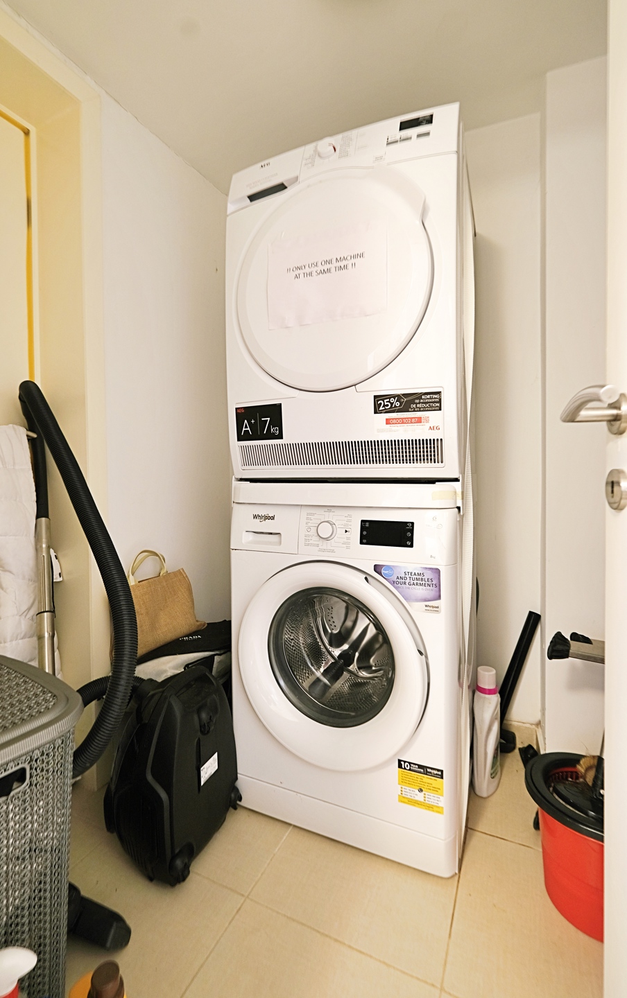 - Au -1, une grande chambre d'environ 14 m2 avec accès à une salle de douche avec WC, une buanderie équipée d'une machine à laver et d'un sèche-linge et un débarras.