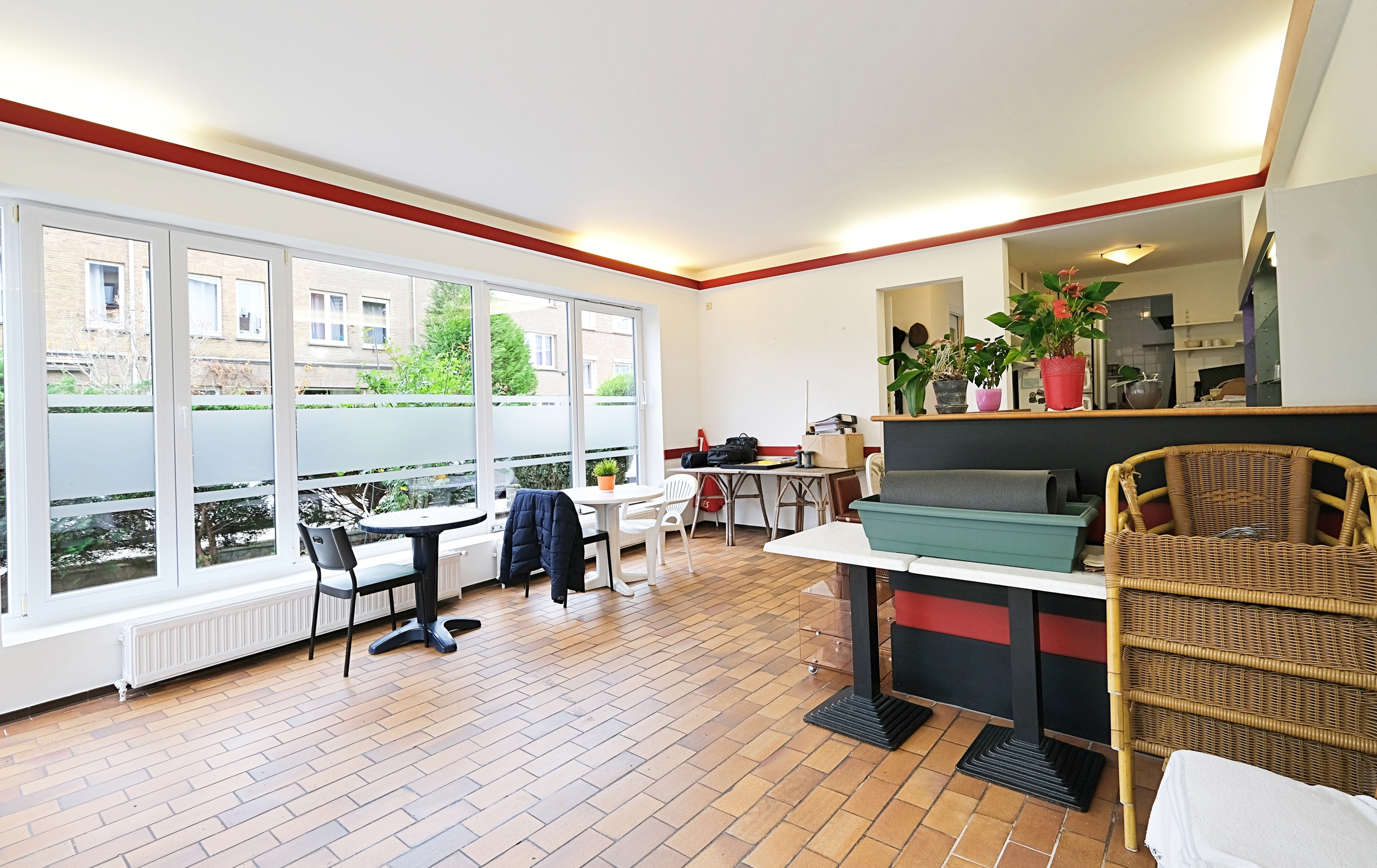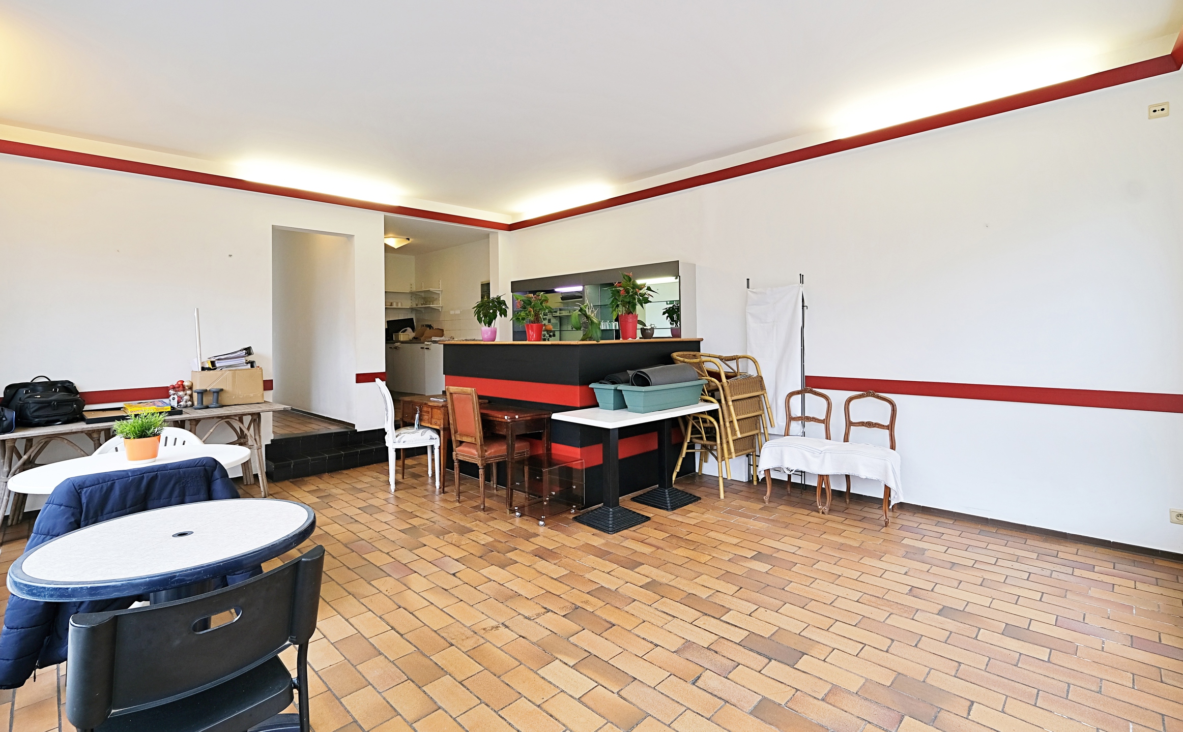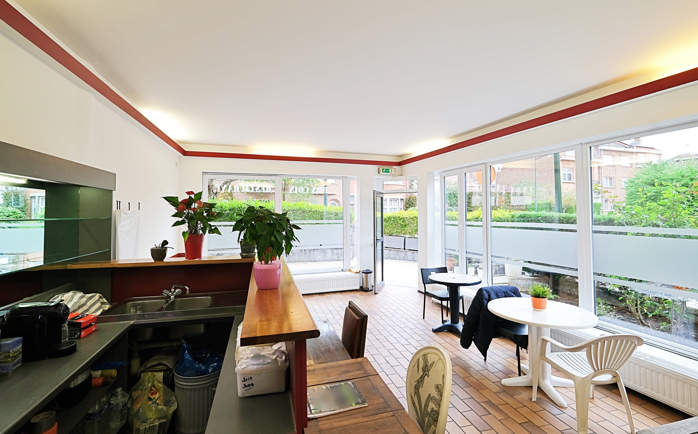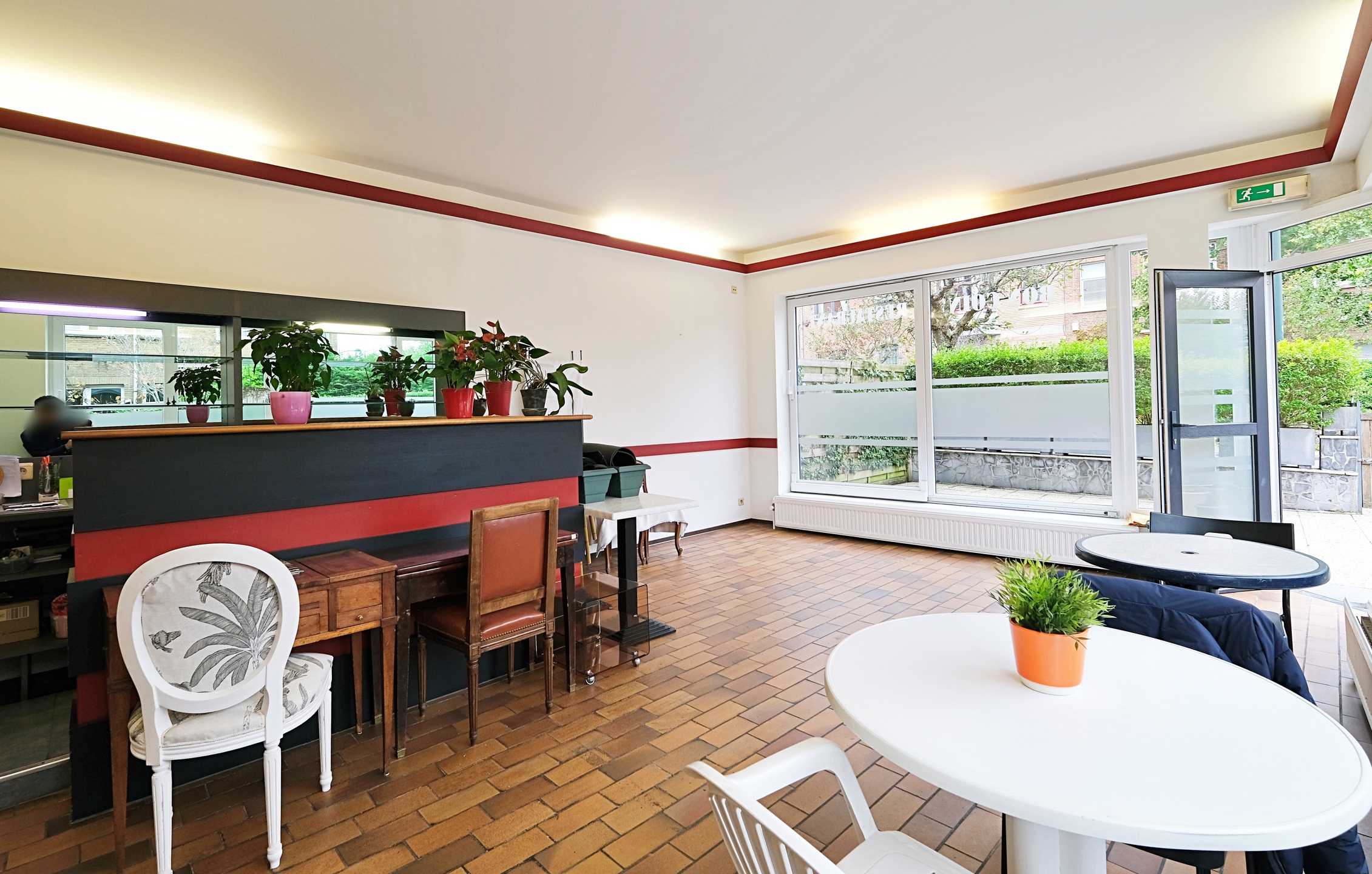 Au RDC, un commerce HORECA d'environ 73 m2 avec 2 salles, une cuisine professionnelle, une réserve, un WC et une terrasse orientée ouest de 21 m2. Réaffectation possible sous réserve de l'obtention d'un permis d'urbanisme.