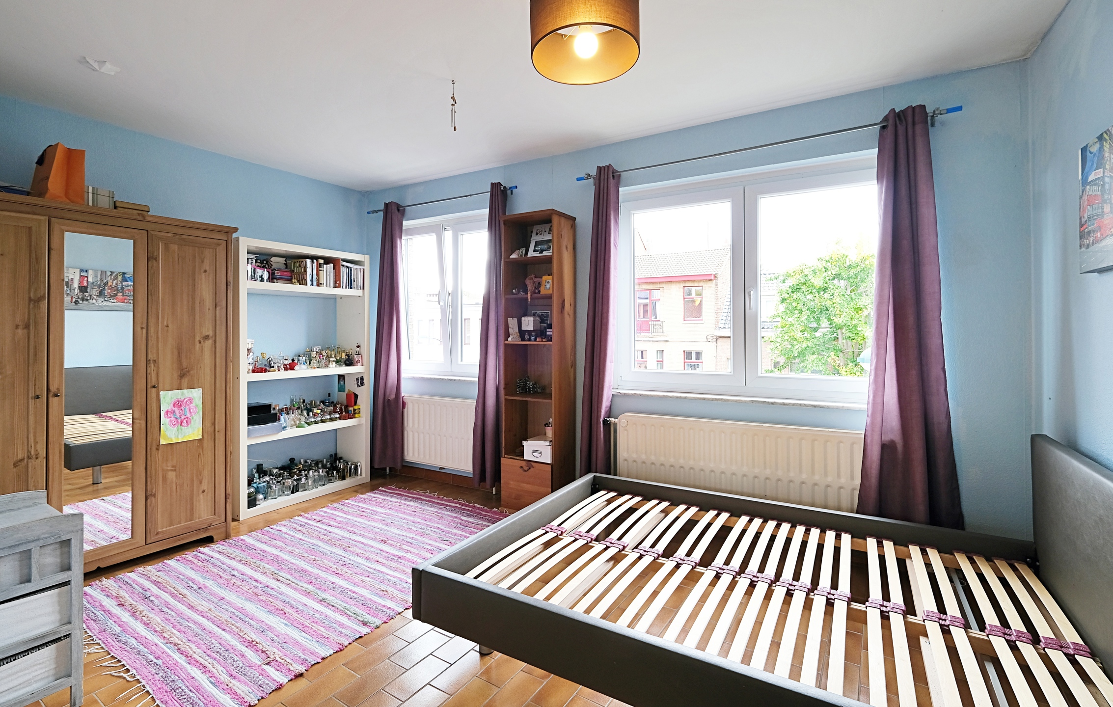 Au 2ème, un appartement d'environ 73 m2 (PEB) avec un beau salon, une cuisine, une salle de bain avec WC, une grande chambre de 17 m2 et un bureau d'environ 7 m2.