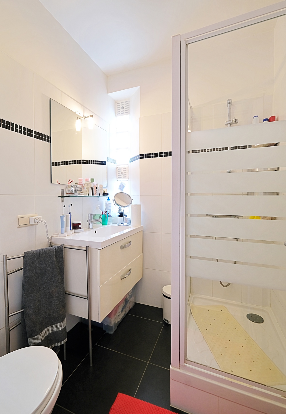 Une place de parking, châssis double vitrage PVC et compteurs privatifs, isolation (murs 2015 et toit 2013), parlophone, certificats électriques non conformes, RU disponibles, PEB E.