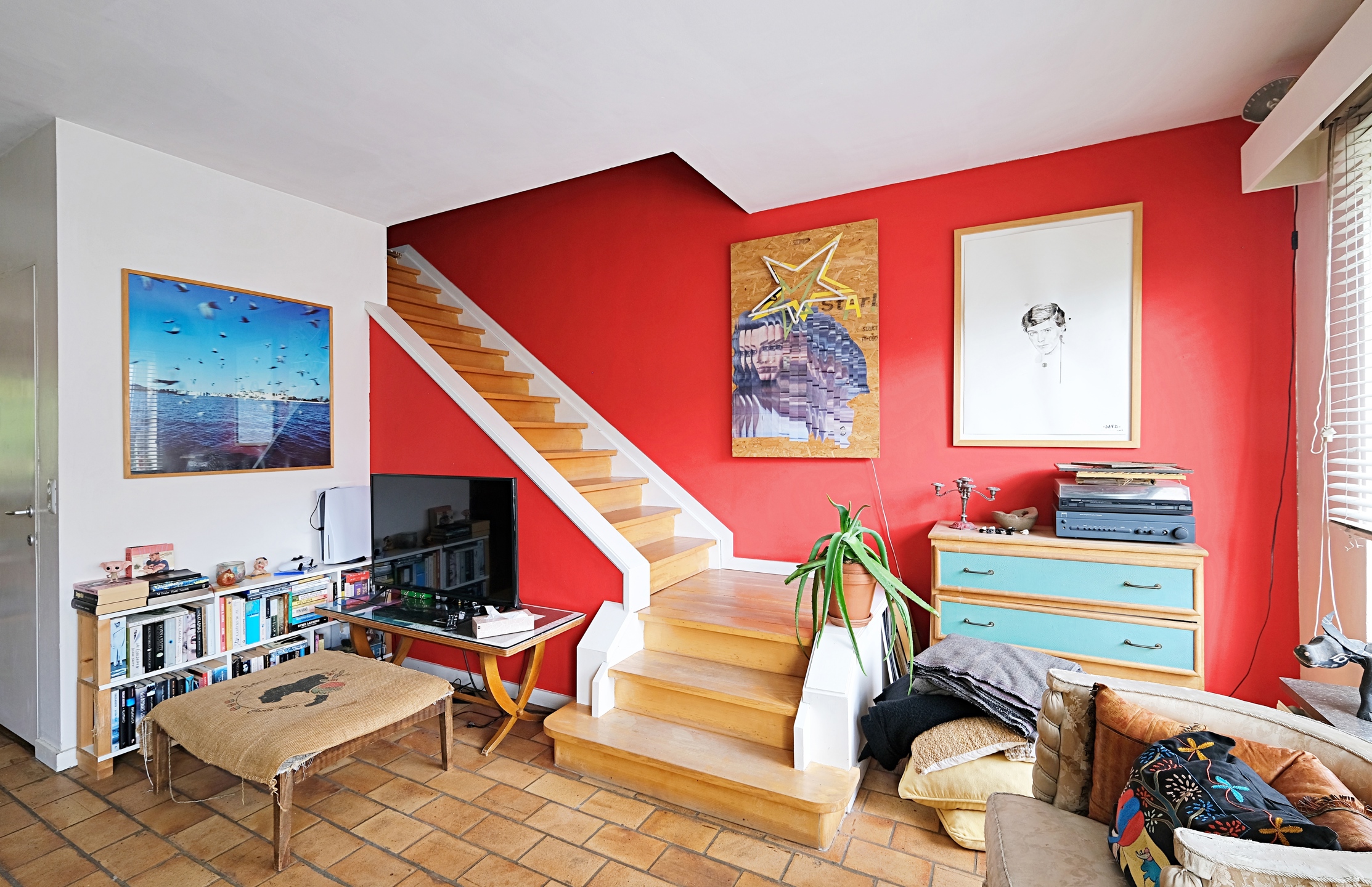 Au 2ème étage, 2 grandes chambres lumineuses (21 m2 et 16 m2), un bureau d'environ 6 m2, une salle de bain et un WC.