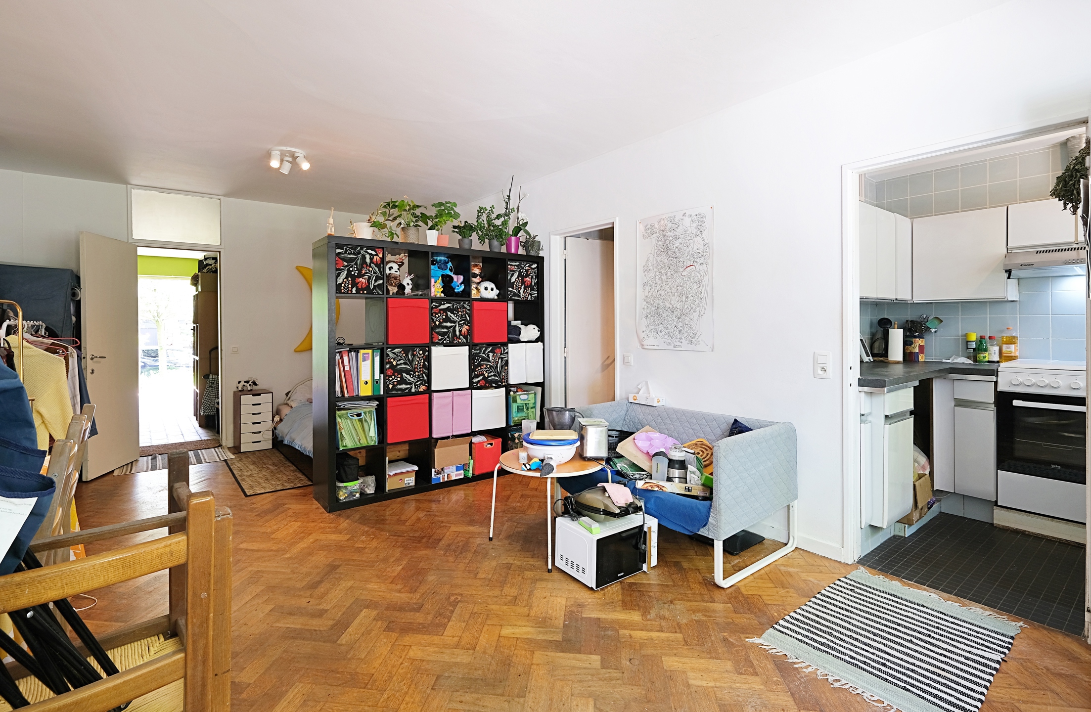 Elle se compose au rez-de-chaussée, d'une entrée spacieuse avec accès direct au garage d'environ 20m2, un studio d'environ 32 m2 avec kitchenette, salle de bain et WC, une belle terrasse d'environ 16 m2 et un jardin d'environ 80 m2.